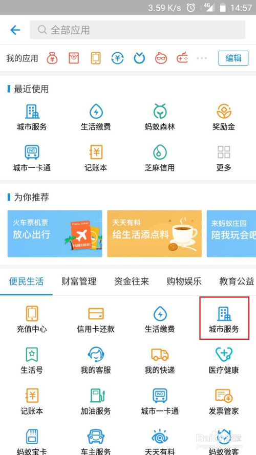 此中公司区域会有“城市办事”一栏,点开城市办事