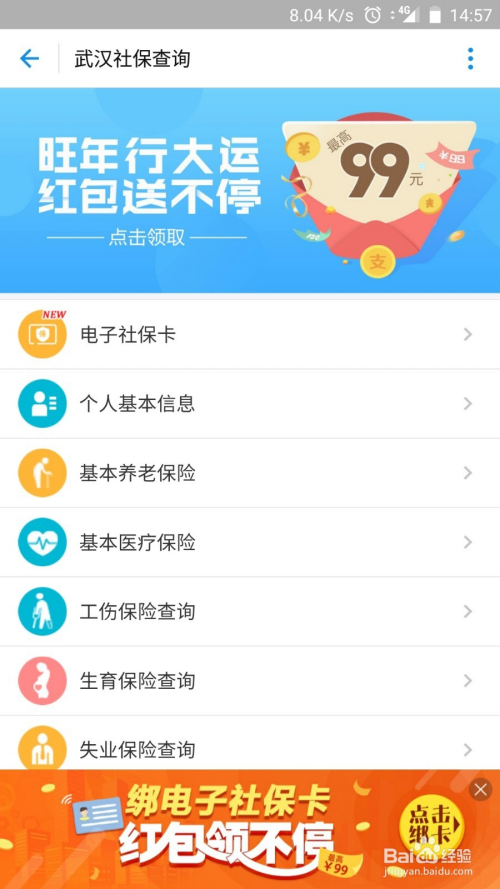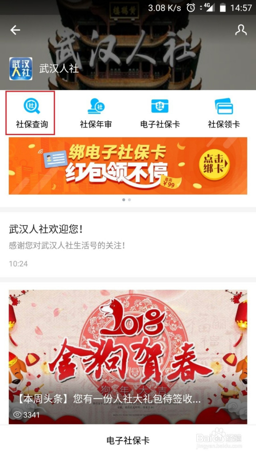 点开武汉人社后可以找到社保查询