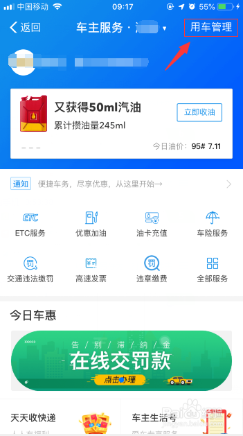 然后点击右上角“用车办理”。