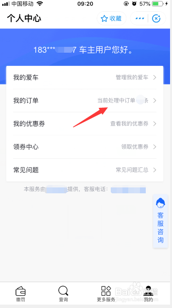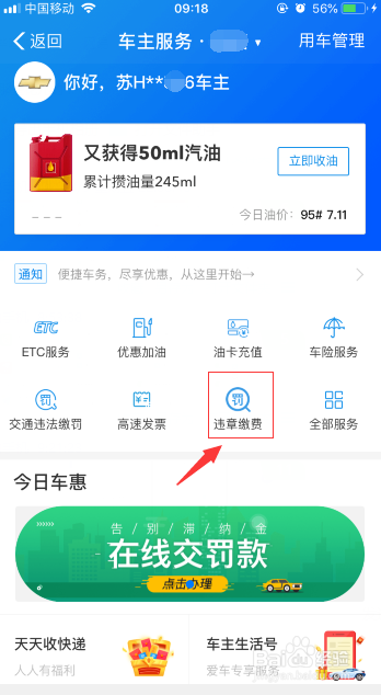接下来我们点击图示处的“违章缴费”。