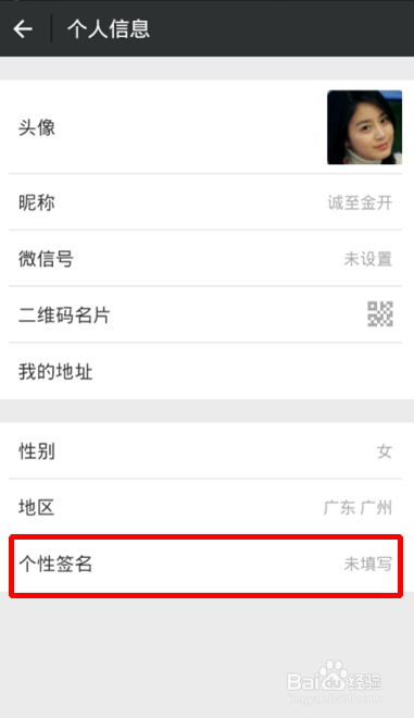 这时,我们再回到本来的小我信息页面,个性签名就显示出来了,今后点窜也是这么一个方式