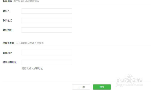 填写公家号运营者小我信息,若是是本身运营,那么则填写本身,包罗姓名、手机号、联系地址,最后填写接收每月结算账单的联系邮箱,确认无误之后,点击提交按钮