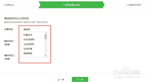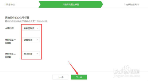 选择流量本家儿标签,这里供给一个本家儿要标签以及两个辅助标签,建议按照本身的粉丝属性进行选择合适的标签,尽量选择跟日常平凡发图文内容比力相关的标签,提高点击率