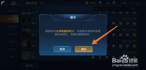 删除老友会提醒,亲密度关系和亲密度值清空。