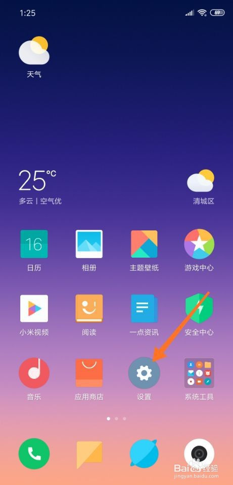在手机桌面,点击设置。