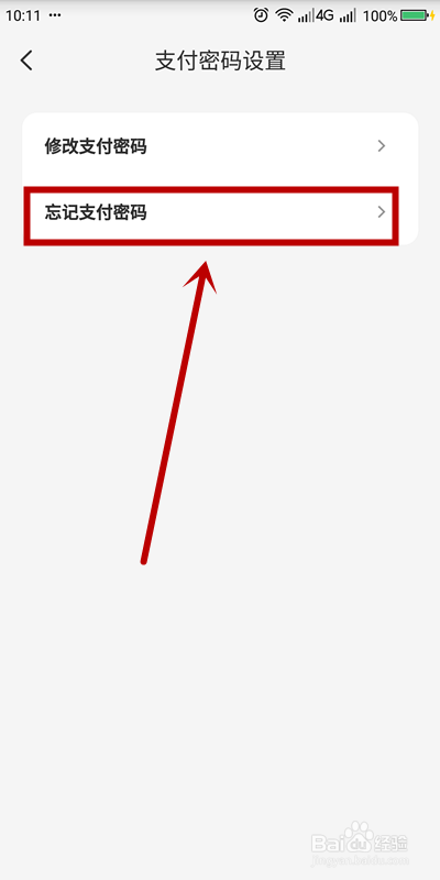 进入【支付密码点窜】页面后,点击【健忘支付密码】选项