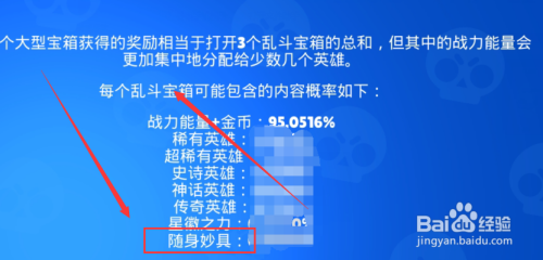 第六:点击乱斗宝箱的【叹号】按钮查看【随身妙具】获得的几率即可。