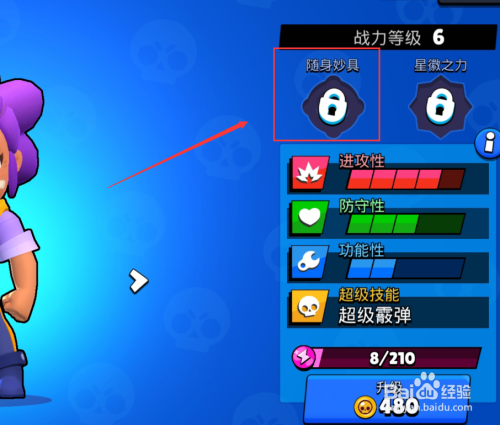 第一:进入荒原乱斗的英雄属性面板点击右上角的【随身妙具】按钮。