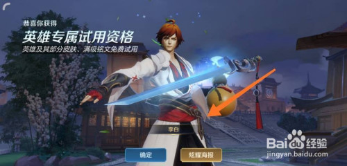 获得李白专属试用资格,英雄及其部门皮肤,满级铭文免费利用。
