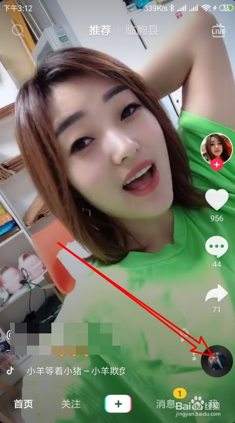 接着在打开的视频播放页面,点击右下角的音乐的图标。