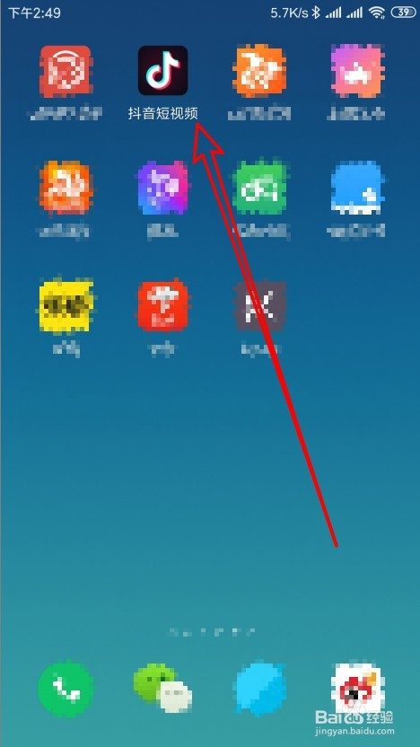 解锁手机屏幕后,摆布滑动点击抖音短视频的图标。