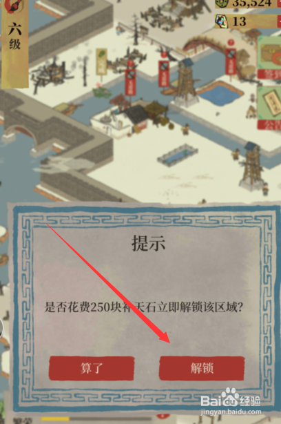 5、呈现新的提醒面板点击右下角的【解锁】按钮耗损补天石解锁。