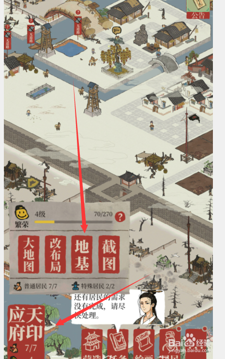 1、点击江南百景图左下角【城市】然后点击【地基】选项按钮。
