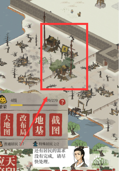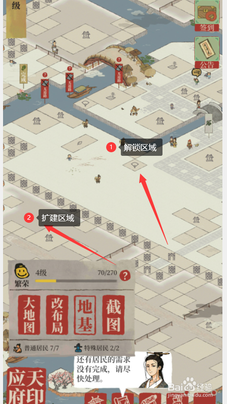 在【扩建区域】点击带有【旗子】标记的建筑物。