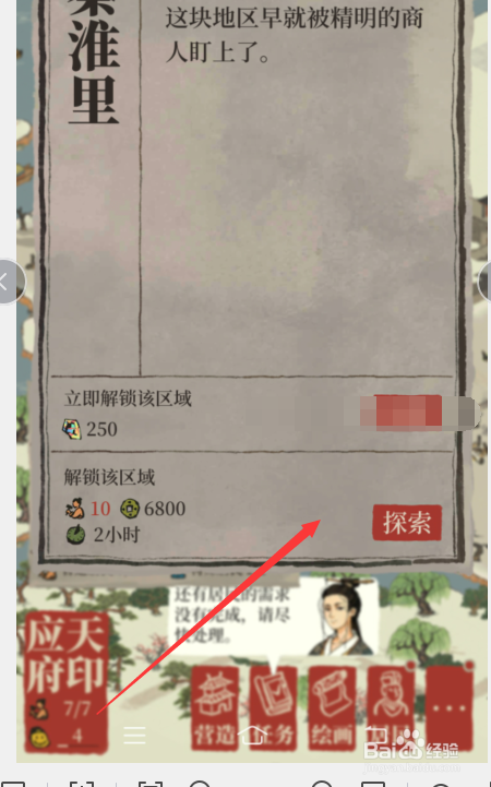 6、返回区域解锁面板点击最下级的【摸索】选项解锁操作完当作。