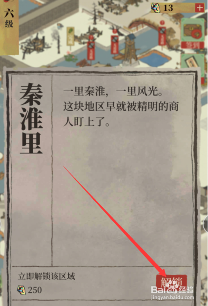 弹出建筑物介绍界面点击下方的【解锁】选项按钮。