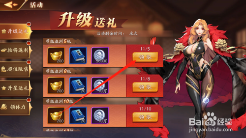 点击进级送礼按钮,进入活动