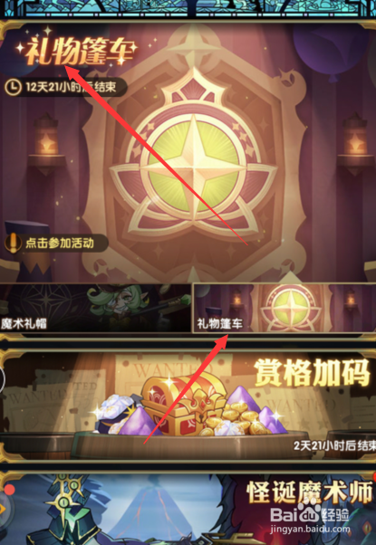 进入礼品篷车界面点击【马戏团纪念章】选项按钮。