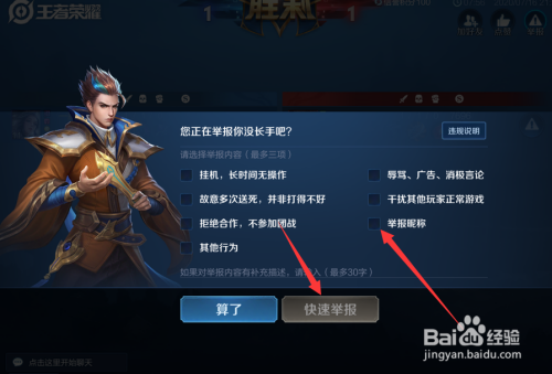 然后选择举报昵称后,点击快速举报。