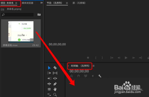 将视频素材,拖入PR的项目面板