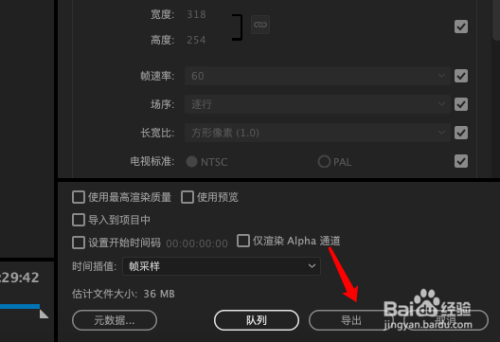 导出设置,选择H264格局,