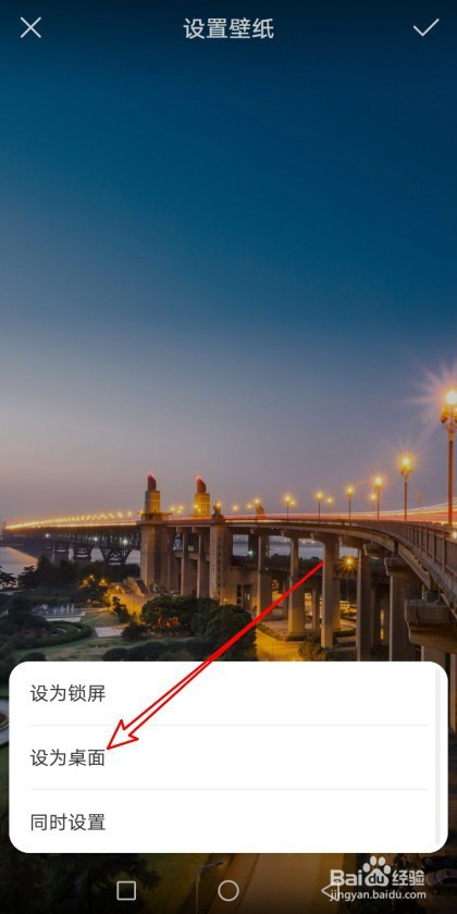 最后点击右上角的保留按钮,然后再弹出的菜单中选择设为桌面的菜单即可。