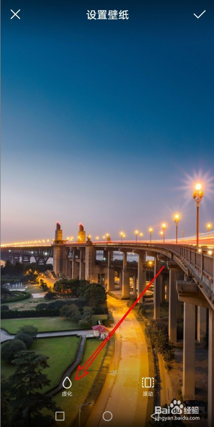 这时就会进入设置壁纸的页面,点击左下角的虚化图标。