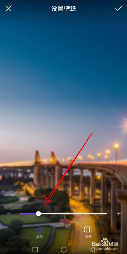 然后再打开到虚化设置页面,拖动滑块时壁纸虚化。