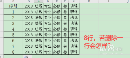 看一下,8行的数据。若要删除一行会如何呢?哈哈,若是删除一行或者多行,看下序号依然摆列的很整洁哦!这就是智能序列号的魅力哦!
