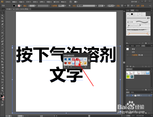 点击【文字东西】按图示设置好文字各参数后,完当作“按下气泡溶剂文字”文字建造;