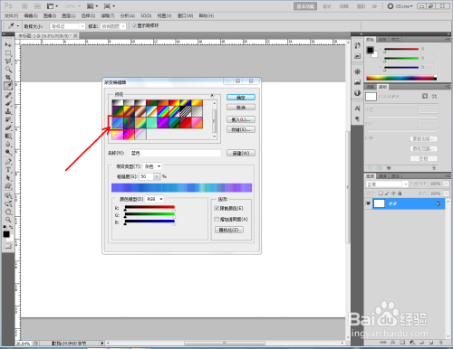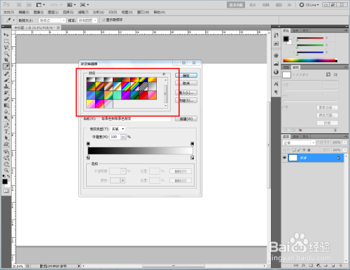 点击【渐变东西】-【径标的目的渐变】,点按【可编纂渐变条】,弹出渐变编纂器;