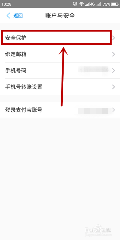 5、在【账户与平安】页面,单击【平安庇护】选项
