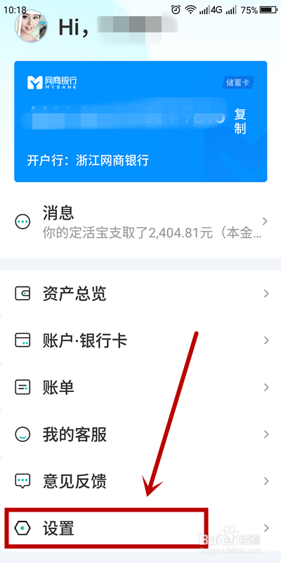 3、在小我中间页面,上滑屏幕,在页面底部找到【设置】按钮点击