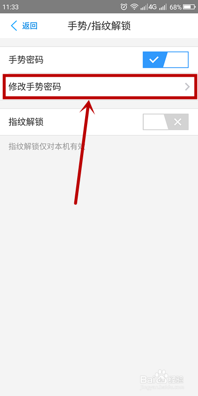 在【手势/指纹解锁】页面,点击【点窜手势密码】