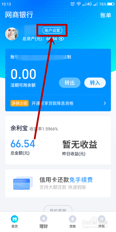 2、登录小我账户后,单击程序首页的【账户设置】选项