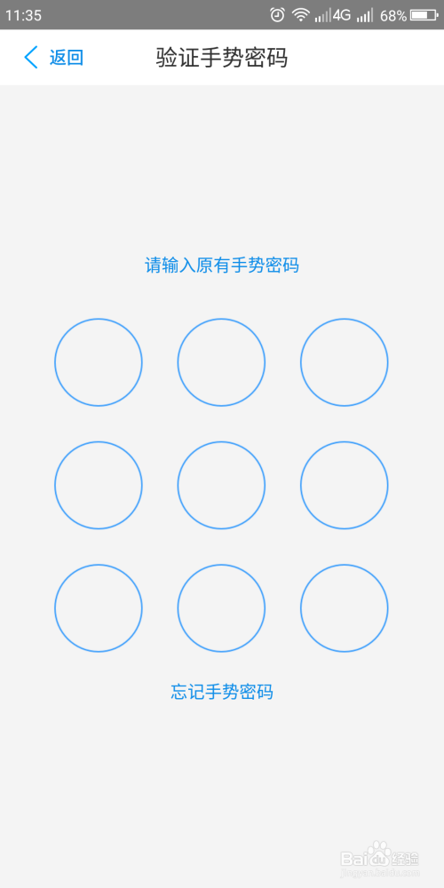 8、要求验证身份需要输入旧的手势密码,验证经由过程即可设置新的手势密码