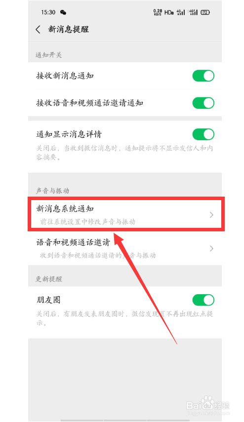 4、点击【新动静系统通知】