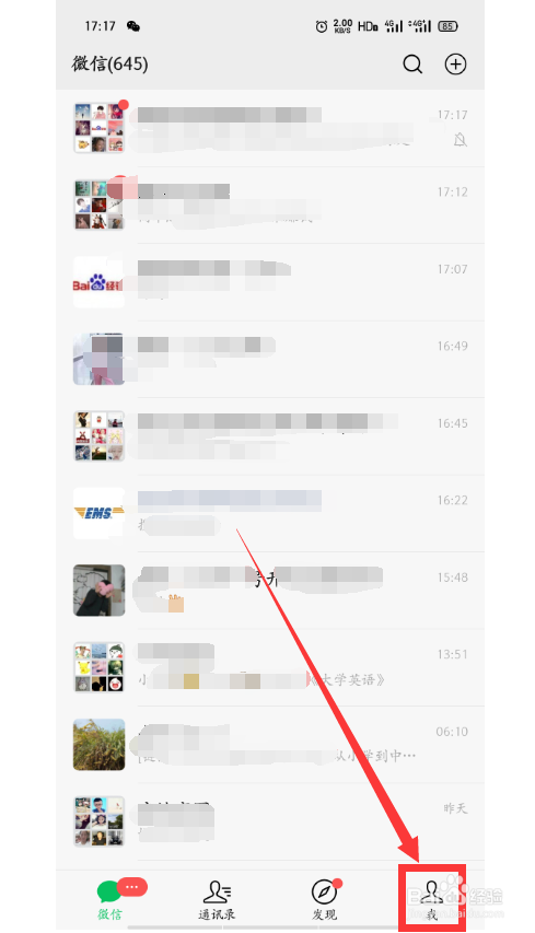 1、打开微信,点击【我】