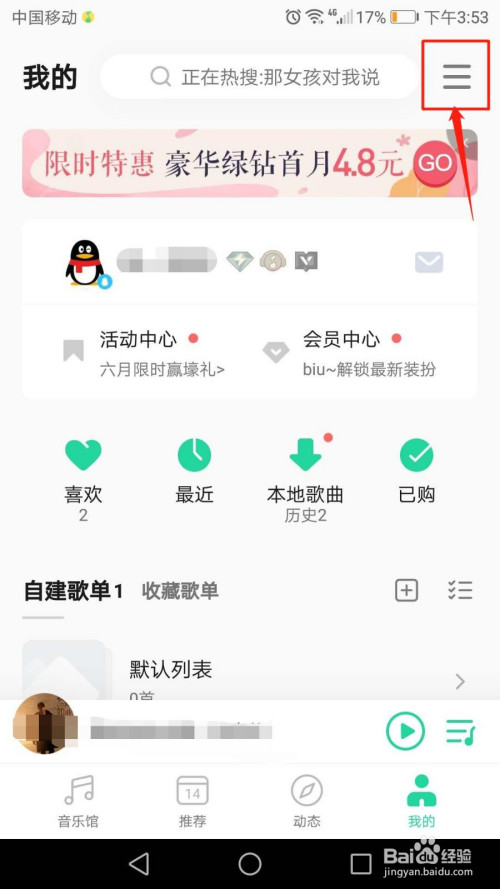 进入我的页面,点击右上角三横图标。