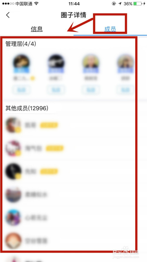 3.点击右上角的小标记,再点击当作员,即可发现该圈子中所有的当作员们。