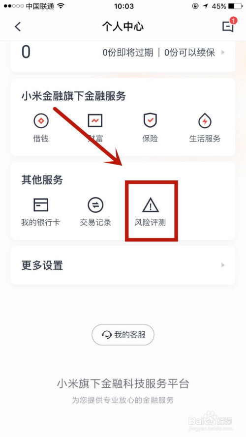 1.进入小米金融,点击左上角原始头像。