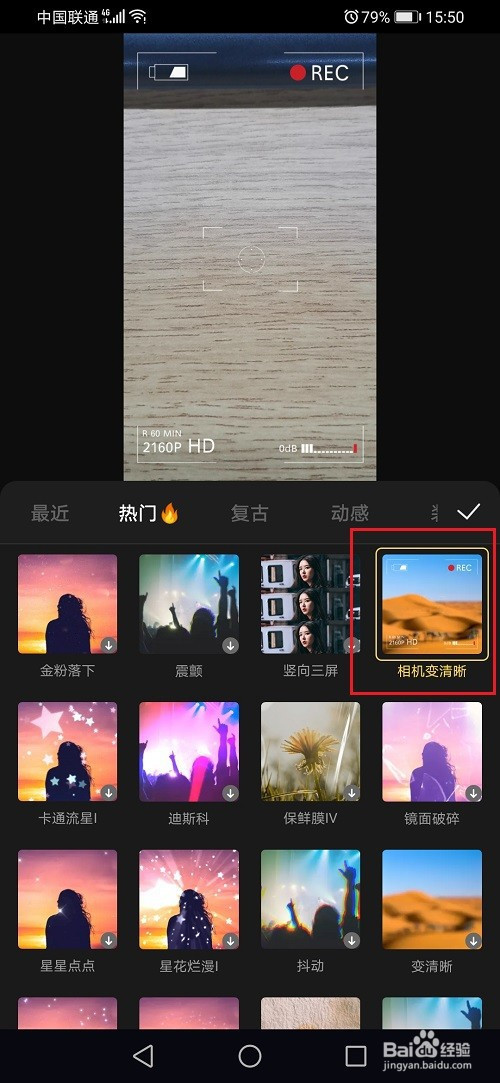 第五步点击特效之后,可以给视频添加本身喜好的特效,如下图所示: