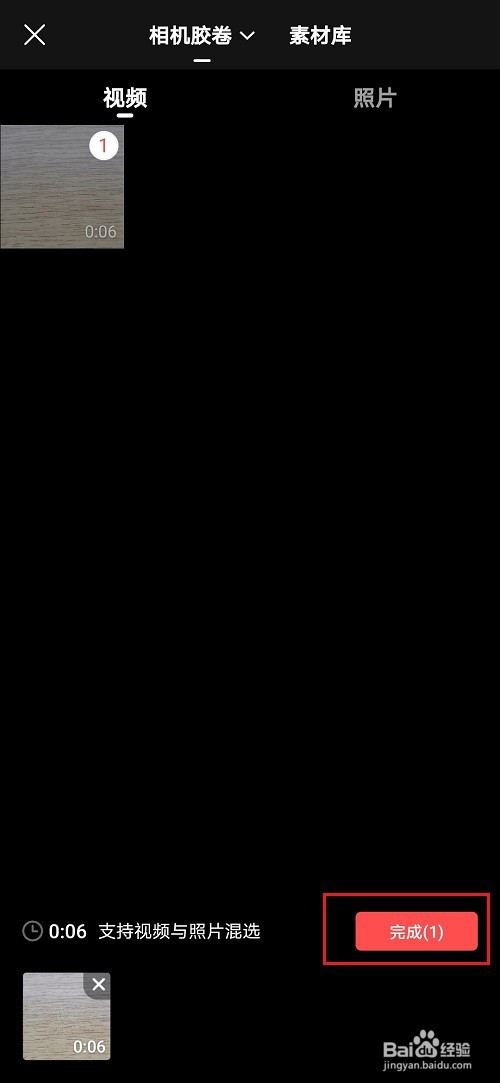 第二步进去快影剪辑界面之后,选择视频,点击完当作,如下图所示: