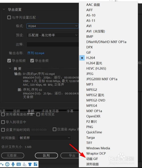 在导出格局中,选择“动画GIF”。