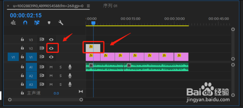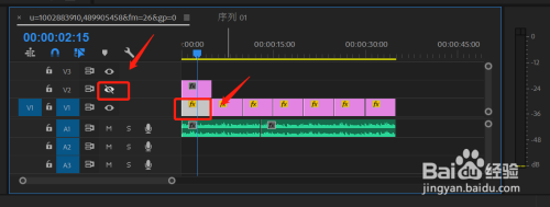 点击选择V2上的素材,打开V2的眼睛可视功能。