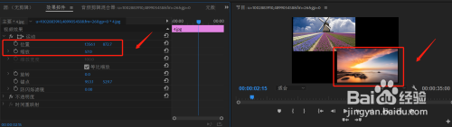 打开结果控件,调整位置和缩放数值,将素材2调整到右下角。在节目窗口进行预览。同时播放两个分歧画面就完当作了。