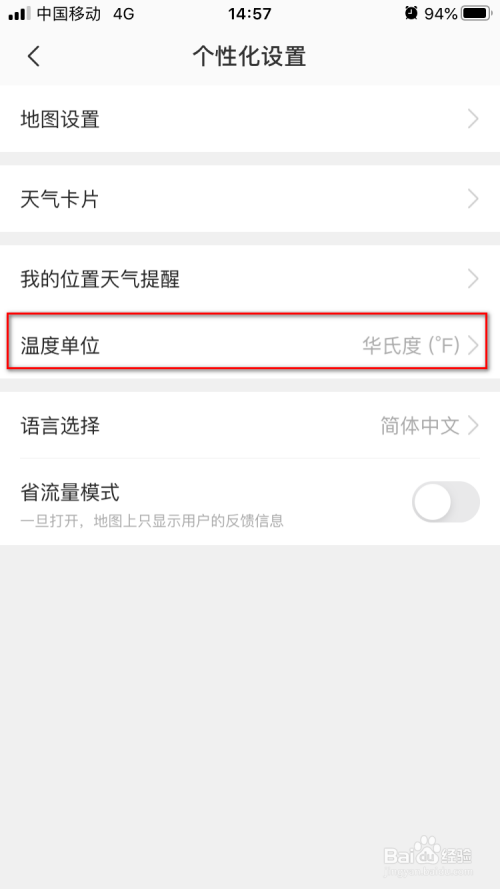6.最后,就可以看到,温度单元已经酿成华氏度了。