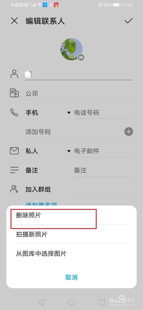 第五步点击删除照片,就当作功打消来电显示布景了,如下图所示: