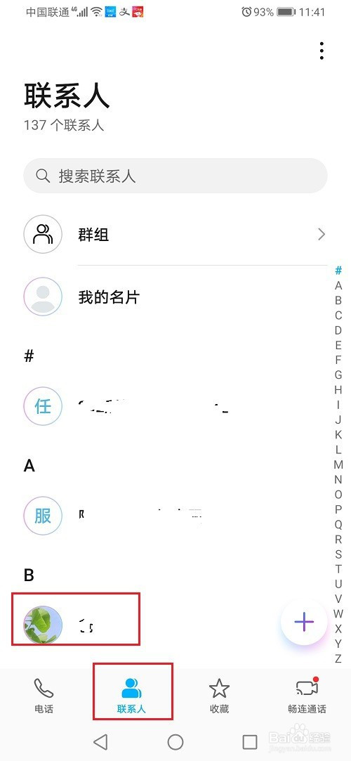 第二步在设置中,点击联系人,选摘要打消来电布景的联系人,如下图所示: