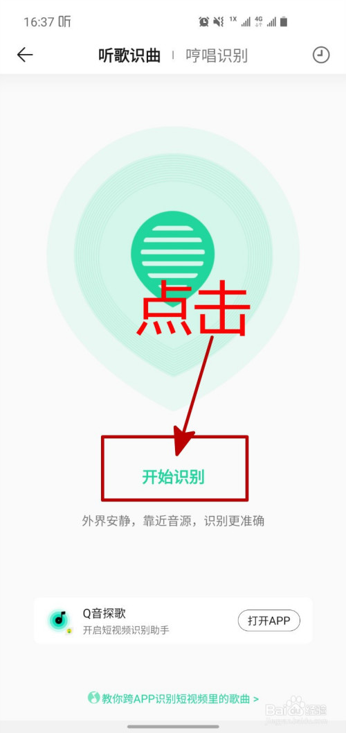 进入到听歌识曲的功能后,点击页面上的“起头识别”。